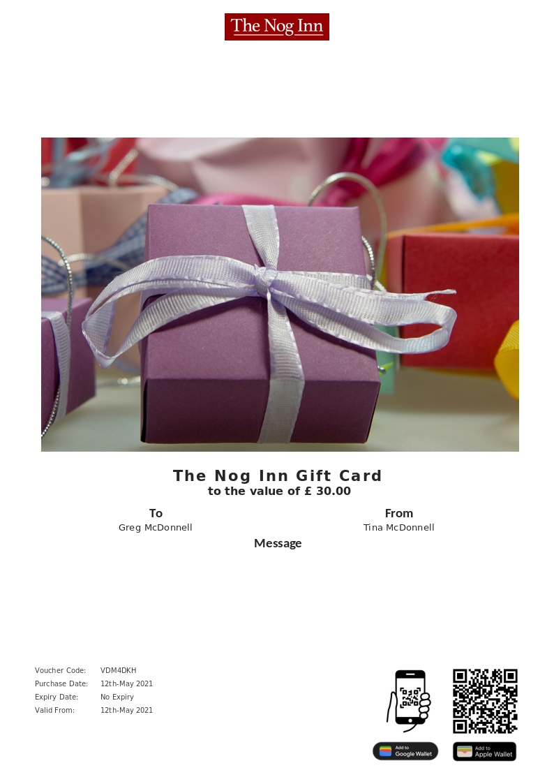The Nog Inn allows you to purchase instantly printable gift vouchers, special offers and tickets using the Voucher Connect platform.